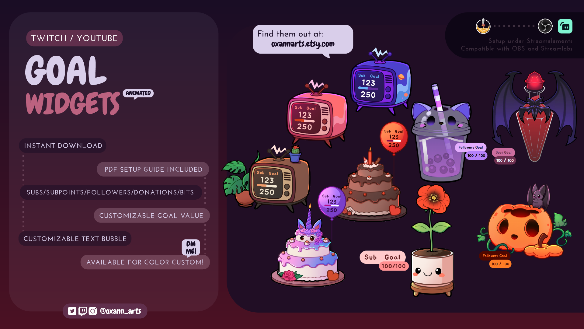 Track your streaming goals (followers, subs, donations) with these cute reactive widgets